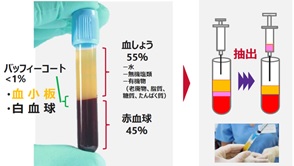 血液の中ある、傷を治す働きを持つ血小板を高濃度に凝縮し活性化させたものが、PRP:Platelet-Rich Plasma