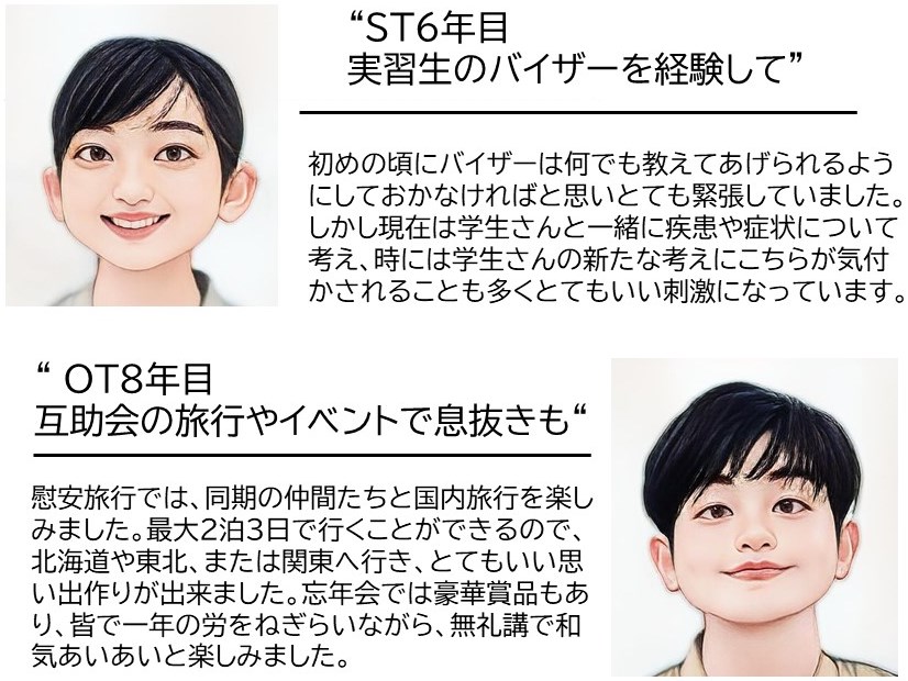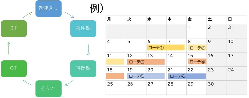 当院リハビリテーション科では、「スーパーローテーション」と「バイザー制度」を取り入れ、1年を通して新人教育を行っています。