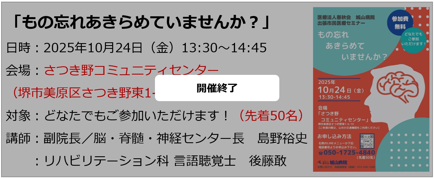 2025年10月24日(金)堺市美原区で市民医療セミナーを開催します!